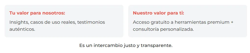 Solo necesitamos tu compromiso de usar la plataforma y compartir tu experiencia honesta.