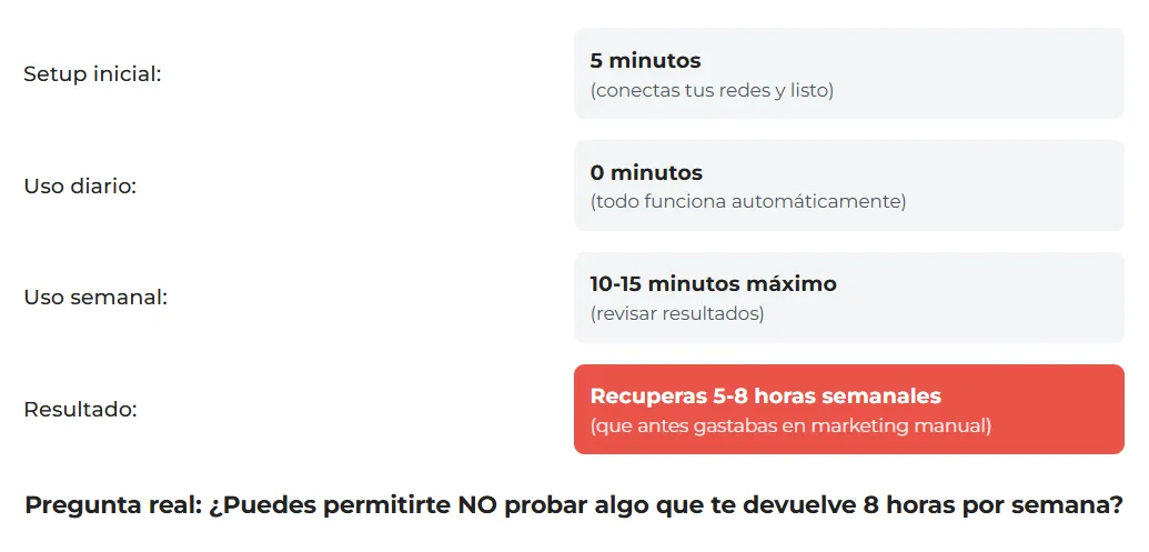 Resultado real: Luis (coach) redujo su tiempo de marketing de 15 horas a 2 horas semanales.