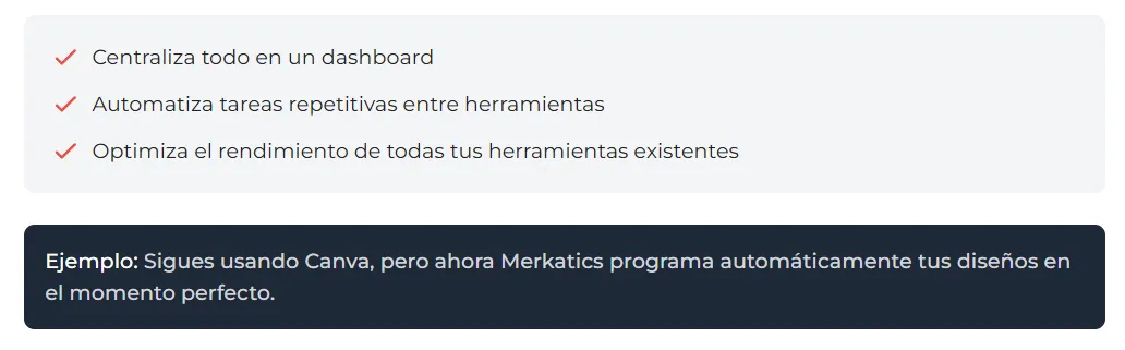 No necesitas cambiar. Merkatics se integra con tus herramientas favoritas.